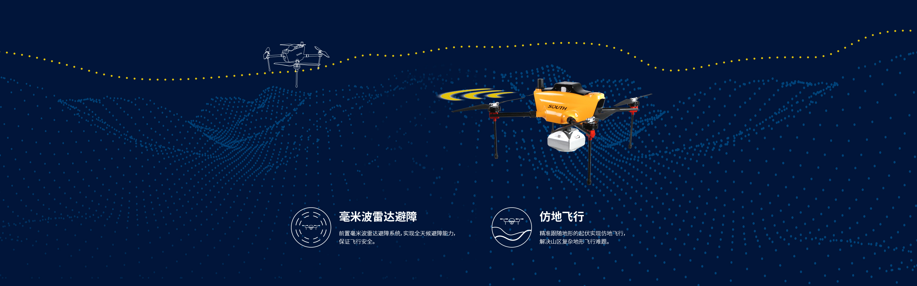 配合地面站軟件和激光避障系統(tǒng),可精準(zhǔn)跟隨地形的起伏實(shí)現(xiàn)仿地飛行,解決山區(qū)復(fù)雜地形飛行難題。