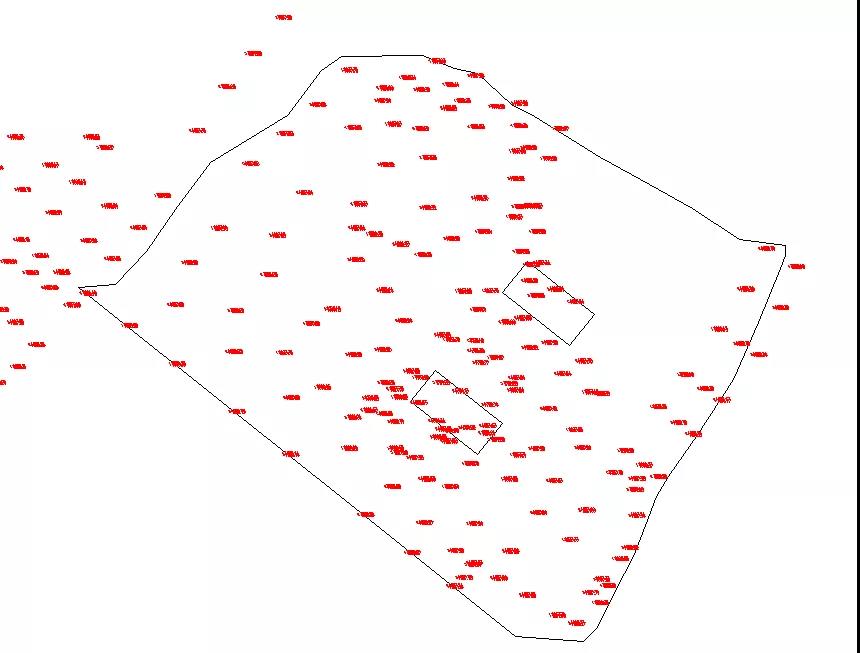 這個實例數(shù)據(jù),已知條件有:封閉的計算范圍,圖面有原始地形高程點,平場設(shè)計標高是1670。內(nèi)部島狀區(qū)域是兩個分離的矩形閉合區(qū)域。需要求解:計算范圍內(nèi),扣除島狀區(qū)域的土方量。那么采用SouthMap方格網(wǎng)法來計算。