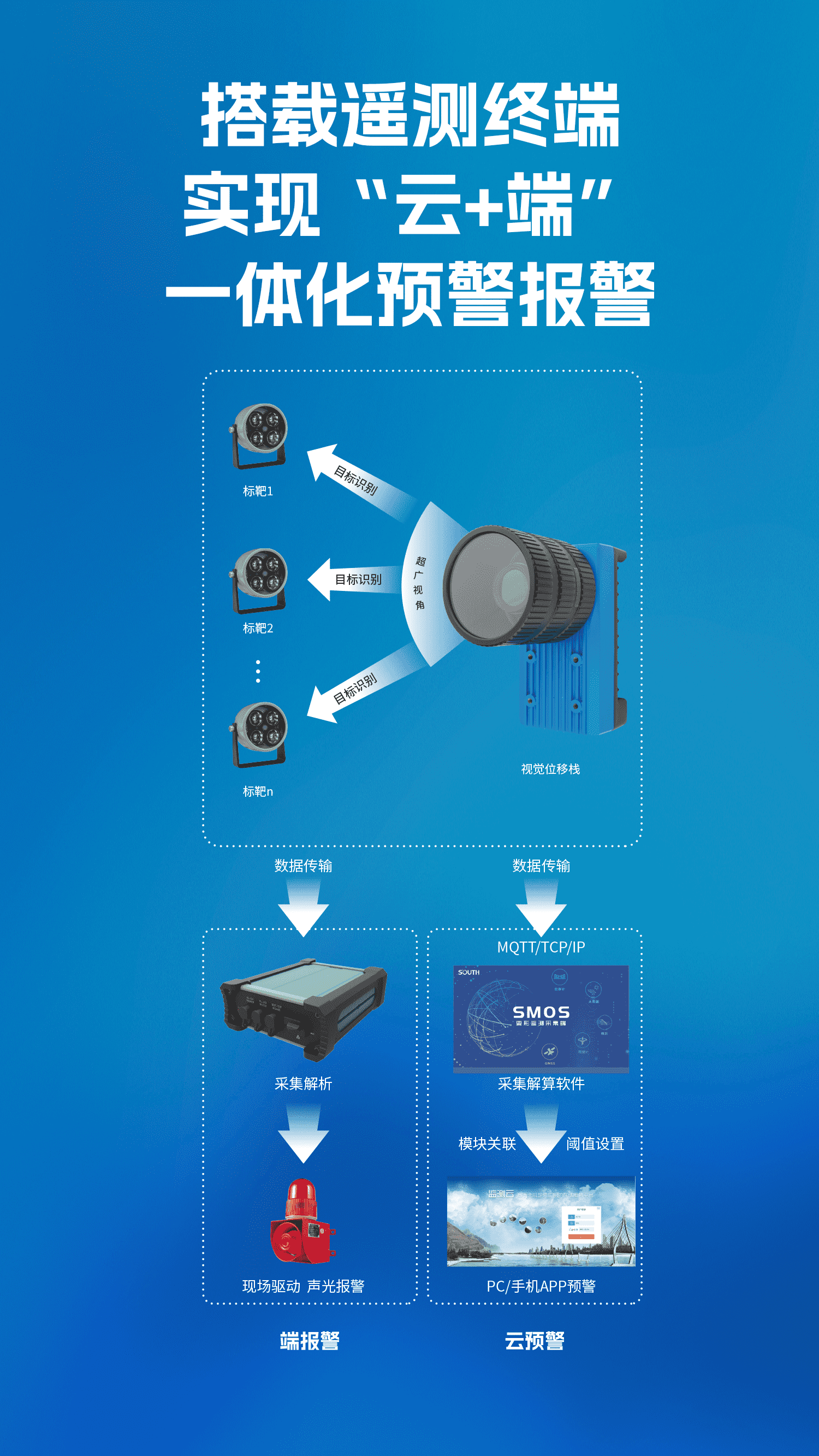 南方視覺位移棧,采用國(guó)際領(lǐng)先的數(shù)字圖像相關(guān)(DIC)技術(shù)與人工智能相融合,嵌入式平臺(tái)設(shè)計(jì),搭載超亞像素級(jí)AI邊緣算法,能夠?qū)崿F(xiàn)對(duì)被測(cè)結(jié)構(gòu)全時(shí)、全域、全場(chǎng)的亞毫米級(jí)位移監(jiān)測(cè)。適用于大壩、橋梁、邊坡、隧道、建筑物、基坑以及高支模等多種應(yīng)用場(chǎng)景的動(dòng)/靜態(tài)變形長(zhǎng)期監(jiān)測(cè)和預(yù)警。