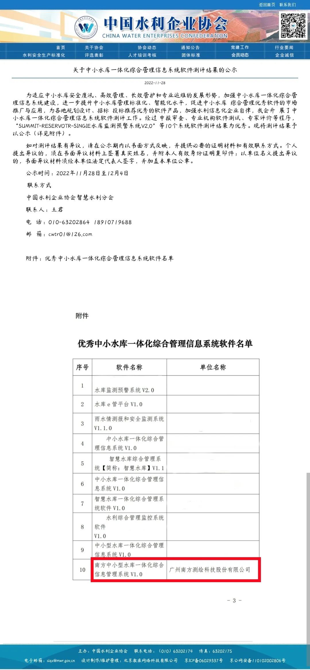 近日,中國水利企業(yè)協(xié)會發(fā)布中小水庫一體化綜合管理信息系統(tǒng)軟件測評結(jié)果。經(jīng)過申報審查、專業(yè)機構(gòu)軟件測試、專家評價等程序,南方測繪的“南方中小型水庫一體化綜合信息管理系統(tǒng)V1.0”被評為優(yōu)秀中小水庫一體化綜合管理信息系統(tǒng)軟件。