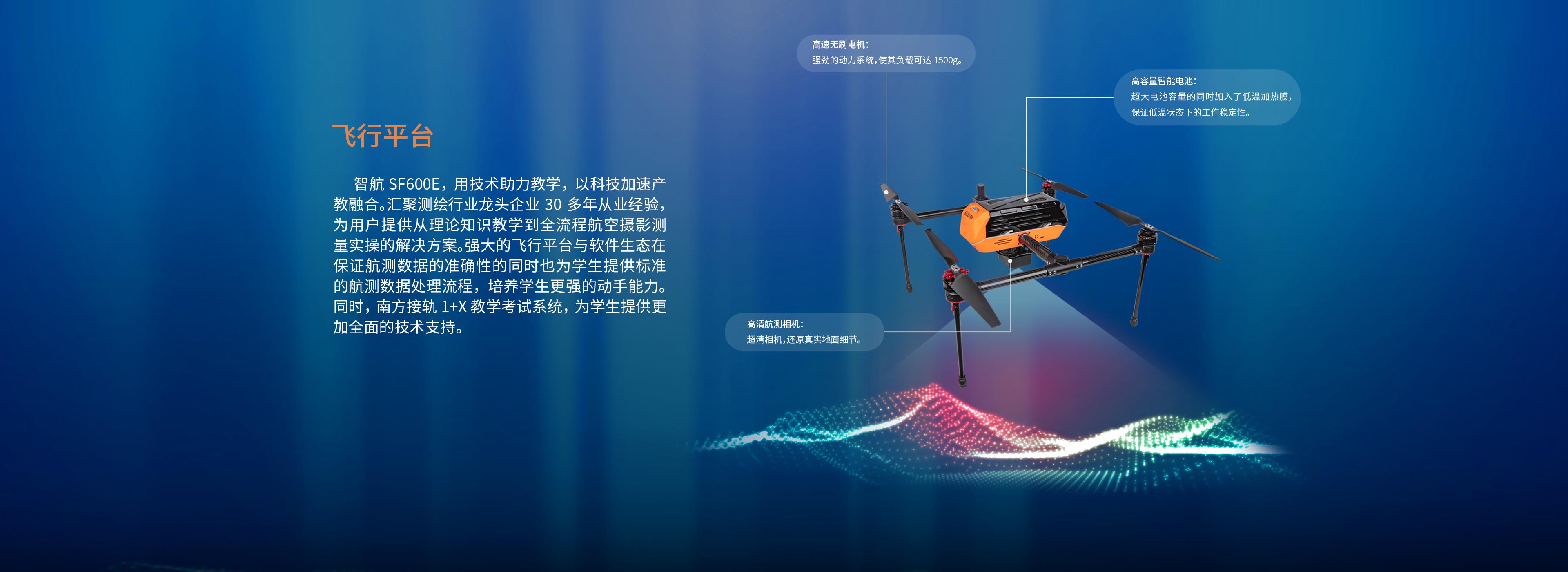 智航SF600E,用技術(shù)助力教學,以科技加速產(chǎn)教融合。匯聚測繪行業(yè)龍頭企業(yè)30多年從業(yè)經(jīng)驗,為用戶提供從理論知識教學到全流程航空攝影測量實操的解決方案。強大的飛行平臺與軟件生態(tài)在保證航測數(shù)據(jù)的準確性的同時也為學生提供標準的航測數(shù)據(jù)處理流程,培養(yǎng)學生更強的動手能力。同時,南方接軌1+X教學考試系統(tǒng),為學生提供更加全面的技術(shù)支持。